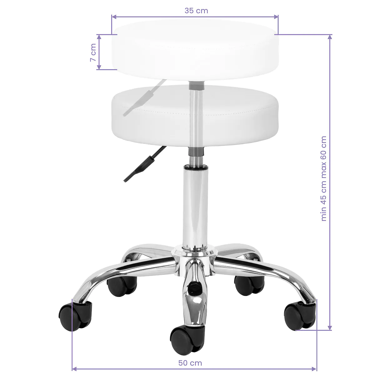 Height adjustment in the range of 45-60 cm thanks to a gas spring allows you to adjust the seat to your individual needs. This makes it easier to work in an ergonomic position and makes daily tasks less stressful.