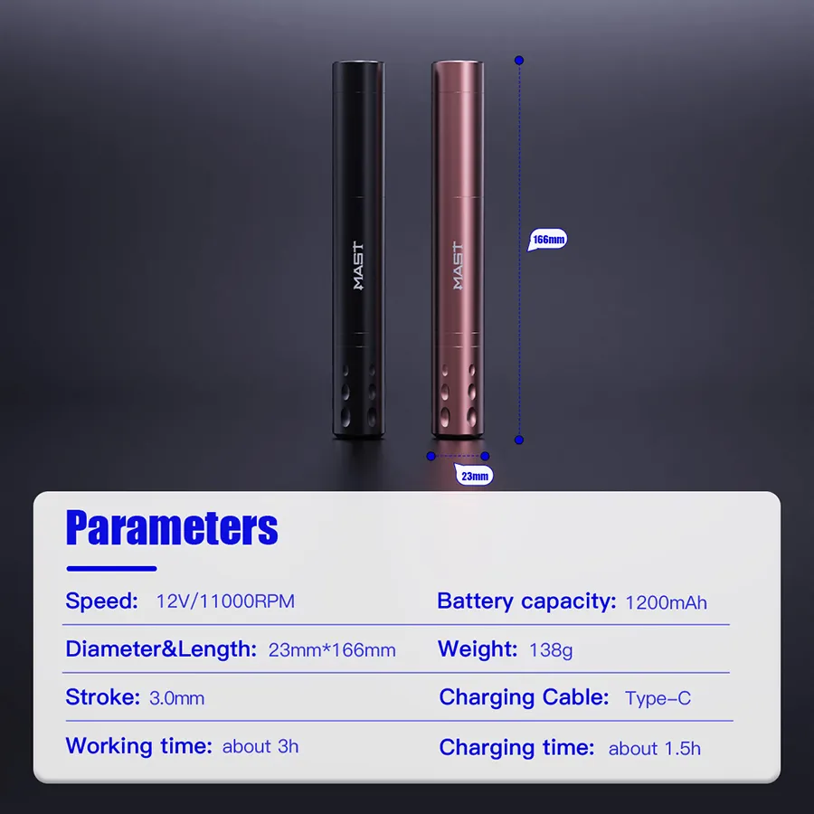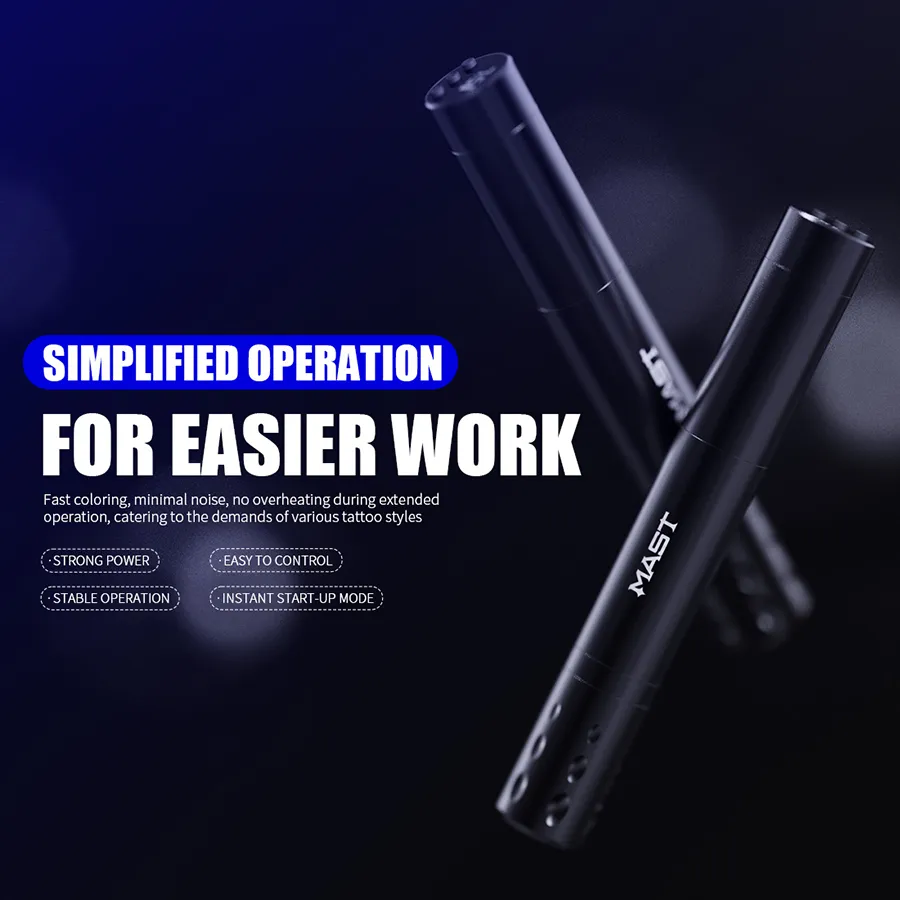 - The Mast tattoo pen machine uses a powerful coreless motor, which has stronger power, more stable operation, and higher frequency. It can meet the needs of different tattoo styles.