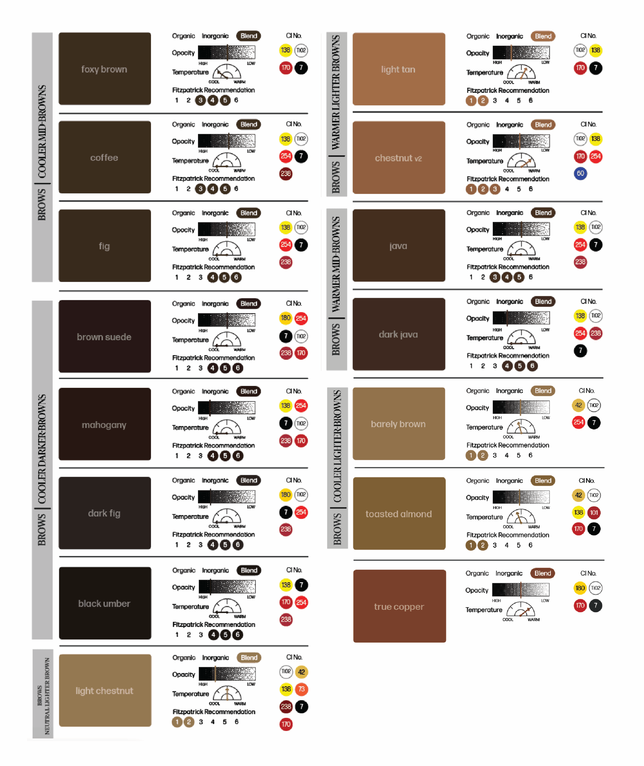 The Perma Blend Luxe Brow Chicka Wow Wow Set contains 8 permanent make-up pigments that are compliant with the latest REACH regulations. These shades can be combined to match any brow, while the True Copper modifier can warm any tone.